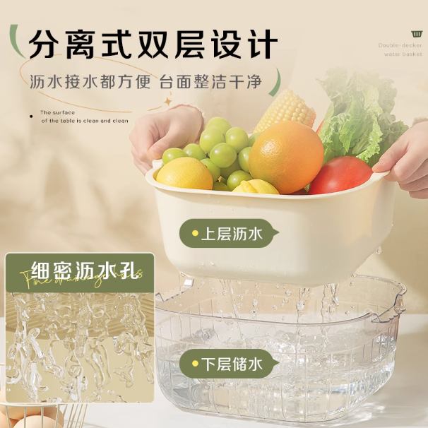 名称:双枪双层沥水篮多功能洗菜盆水果篮蔬果盆新款滤水神器高颜值
