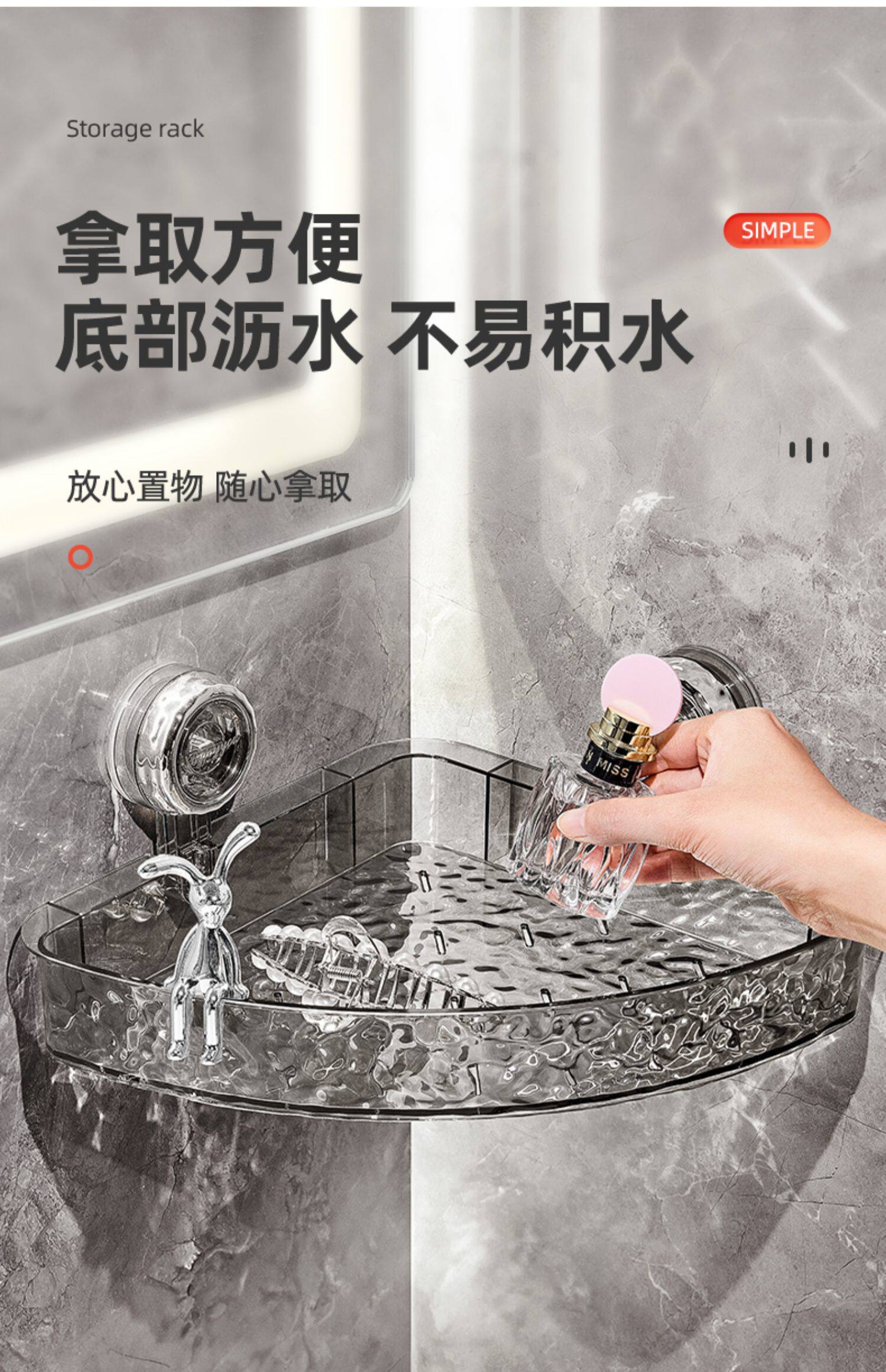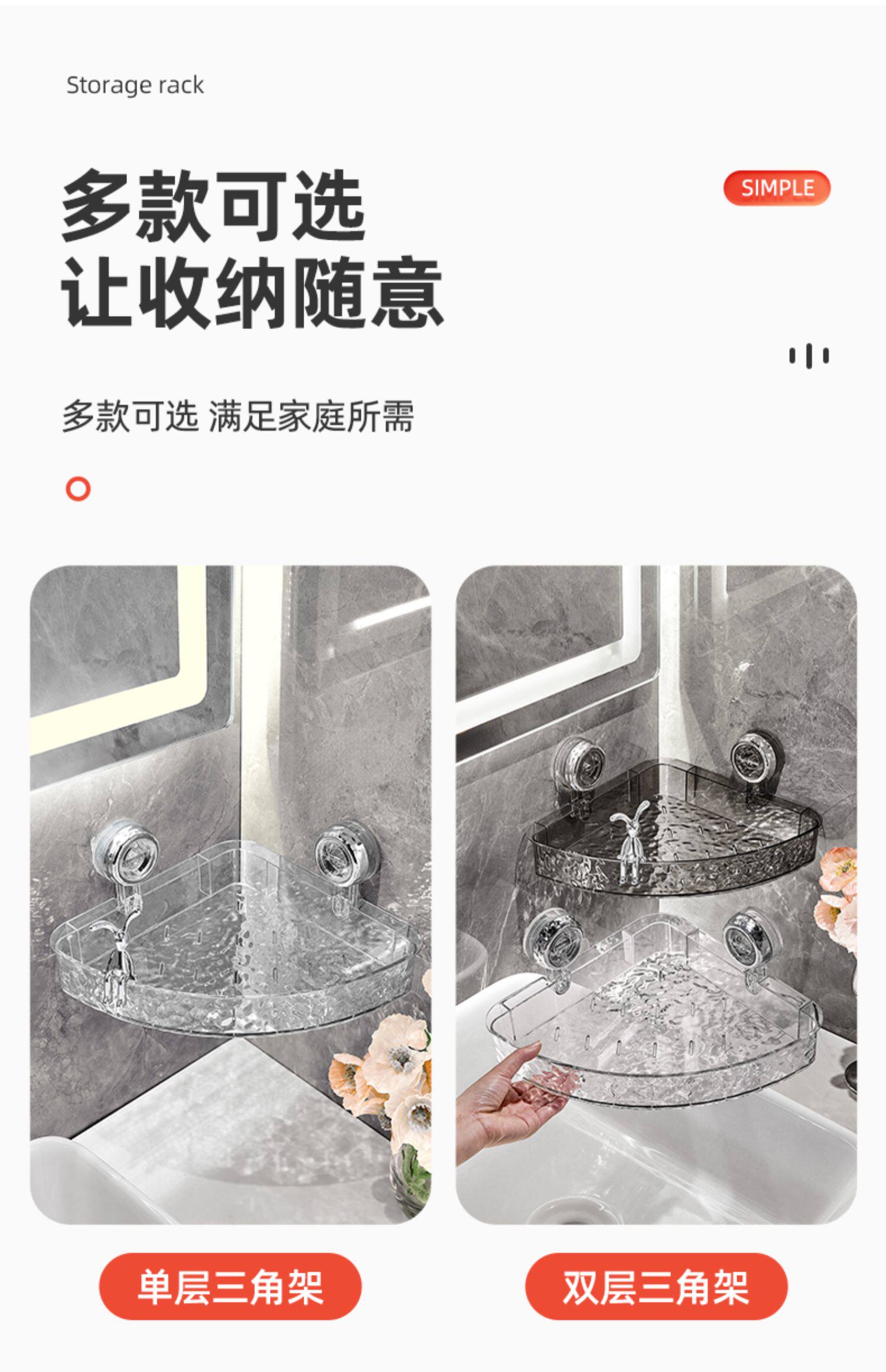 包邮优勤卫生间吸盘置物架子免打孔卫浴室洗手台洗漱台收纳三角篮